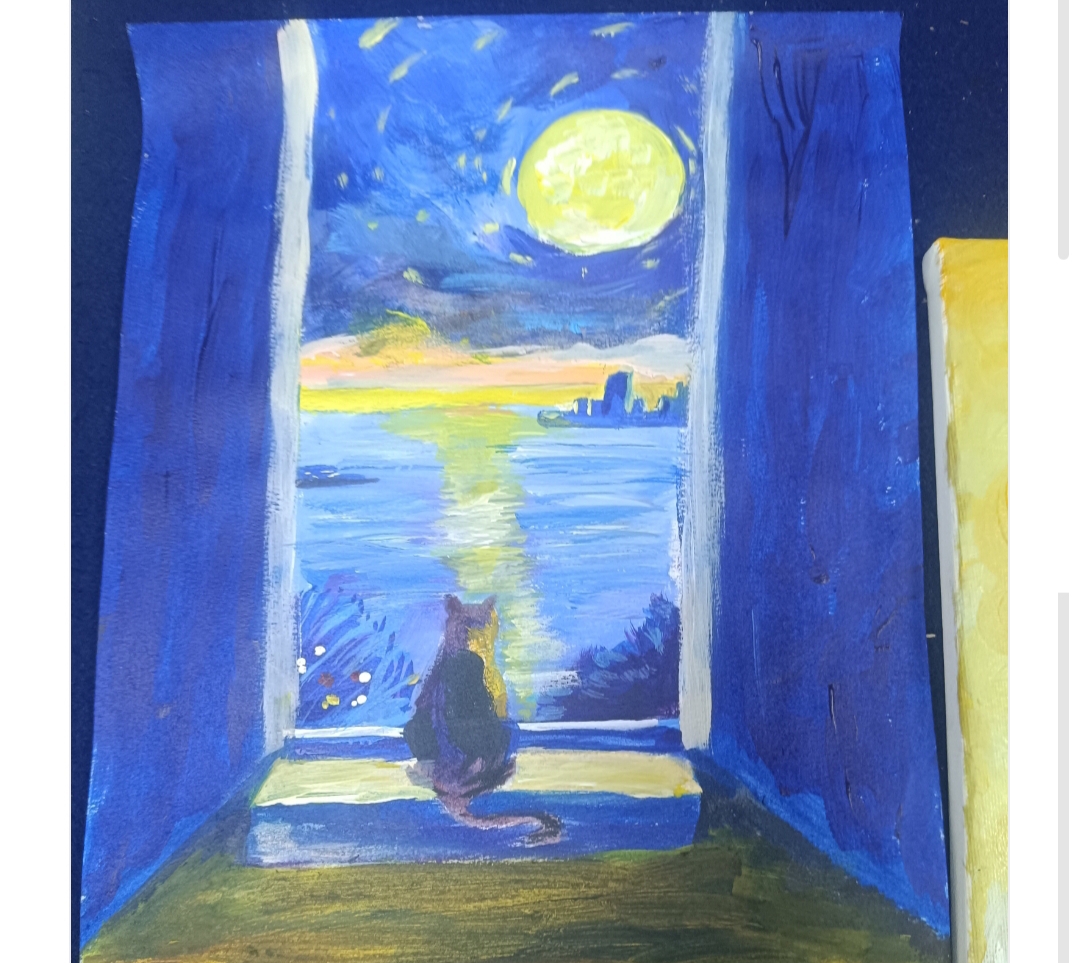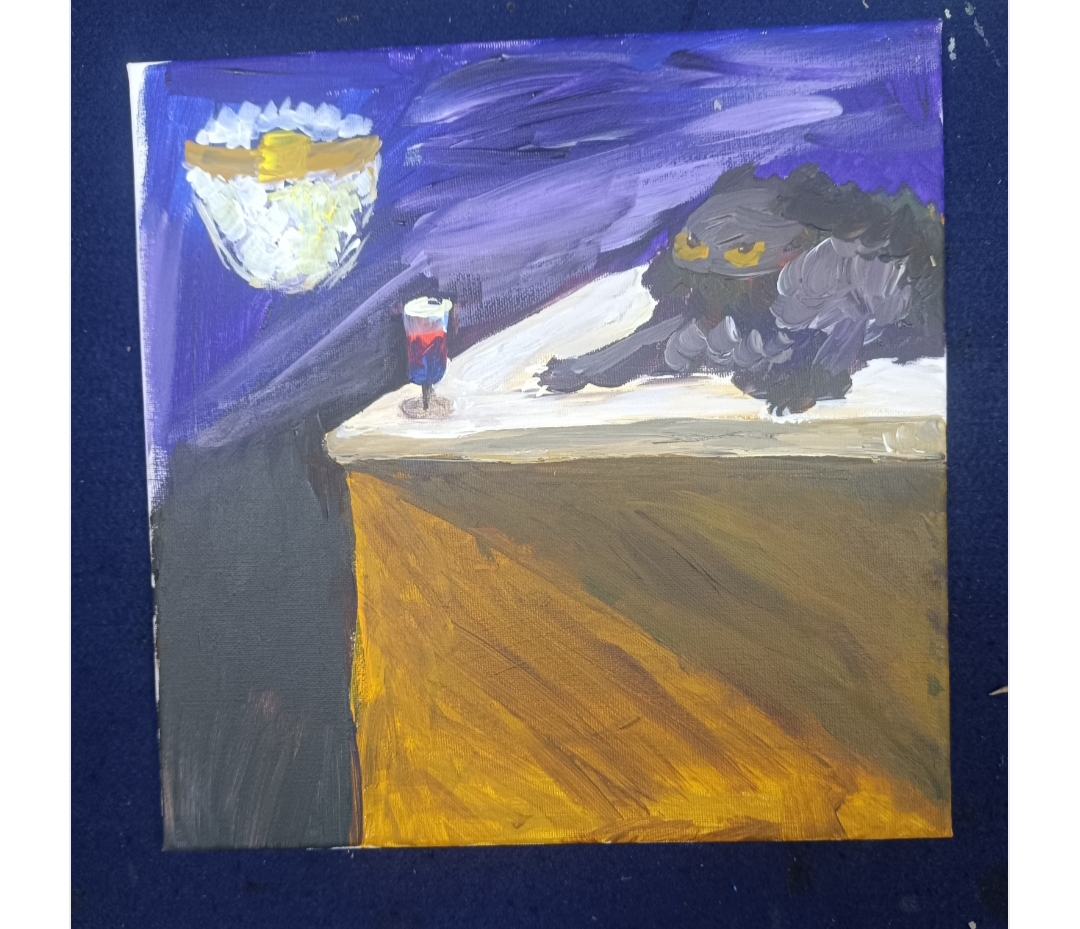 人生是在不断试错中成长,明知不可为还要为之,我临摹的这个作品,一只猫坏坏的想要把杯子拍到地上,画完后有人说这只猫想喝酒,每个不同的人,心态不一样看到的不一样。我觉得这幅画少了点绿色我在原图上面加上了进景让画面更有前后对比。画画是一个很有趣的事情,投入的美术让自己身心愉快,这是我没有工作的第一个月的月底画的,可以看得出来笔触的凌乱和颜色的灰暗。