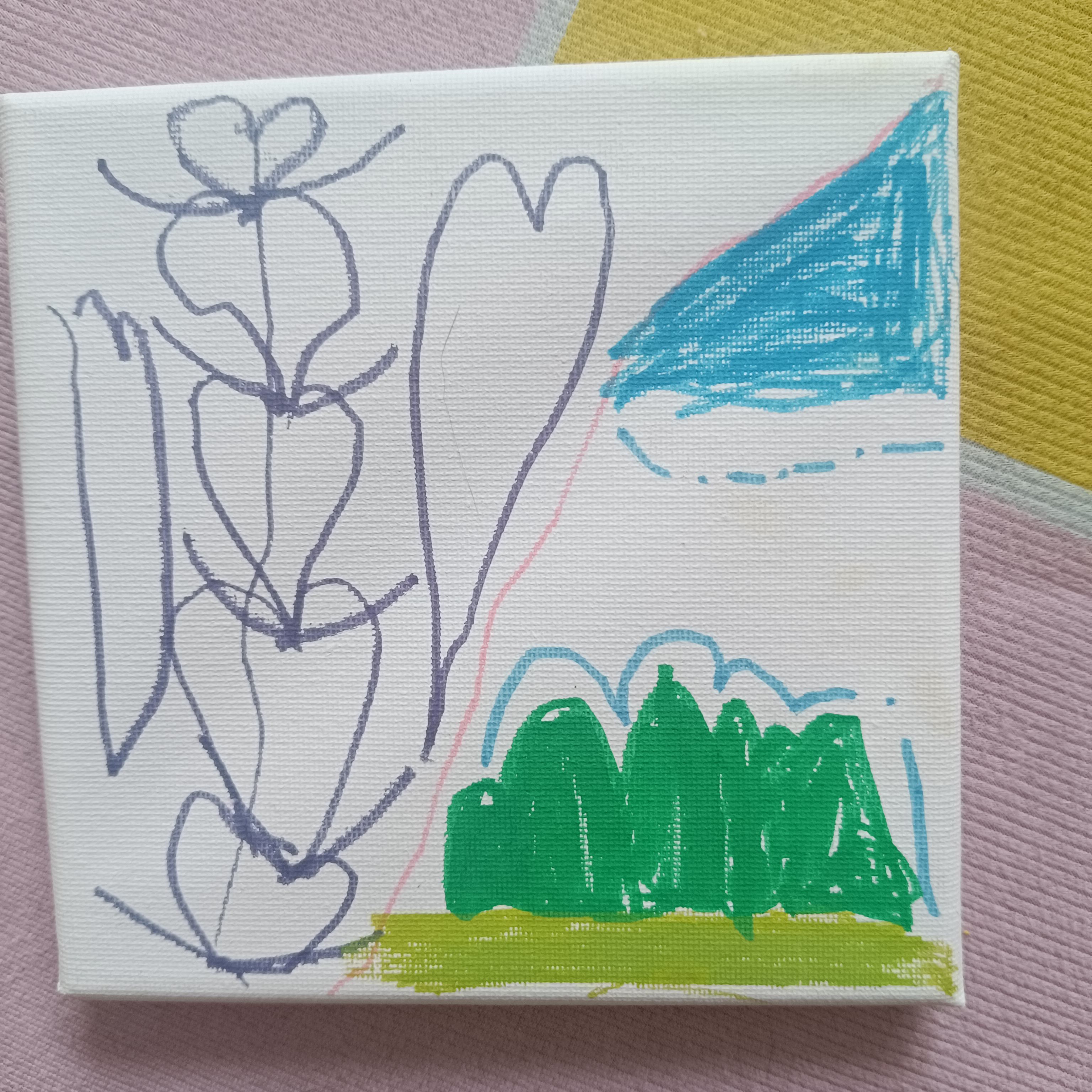 这两幅小画是萱萱刚开始画画,花费很长时间画出来的最正式的认真的画。